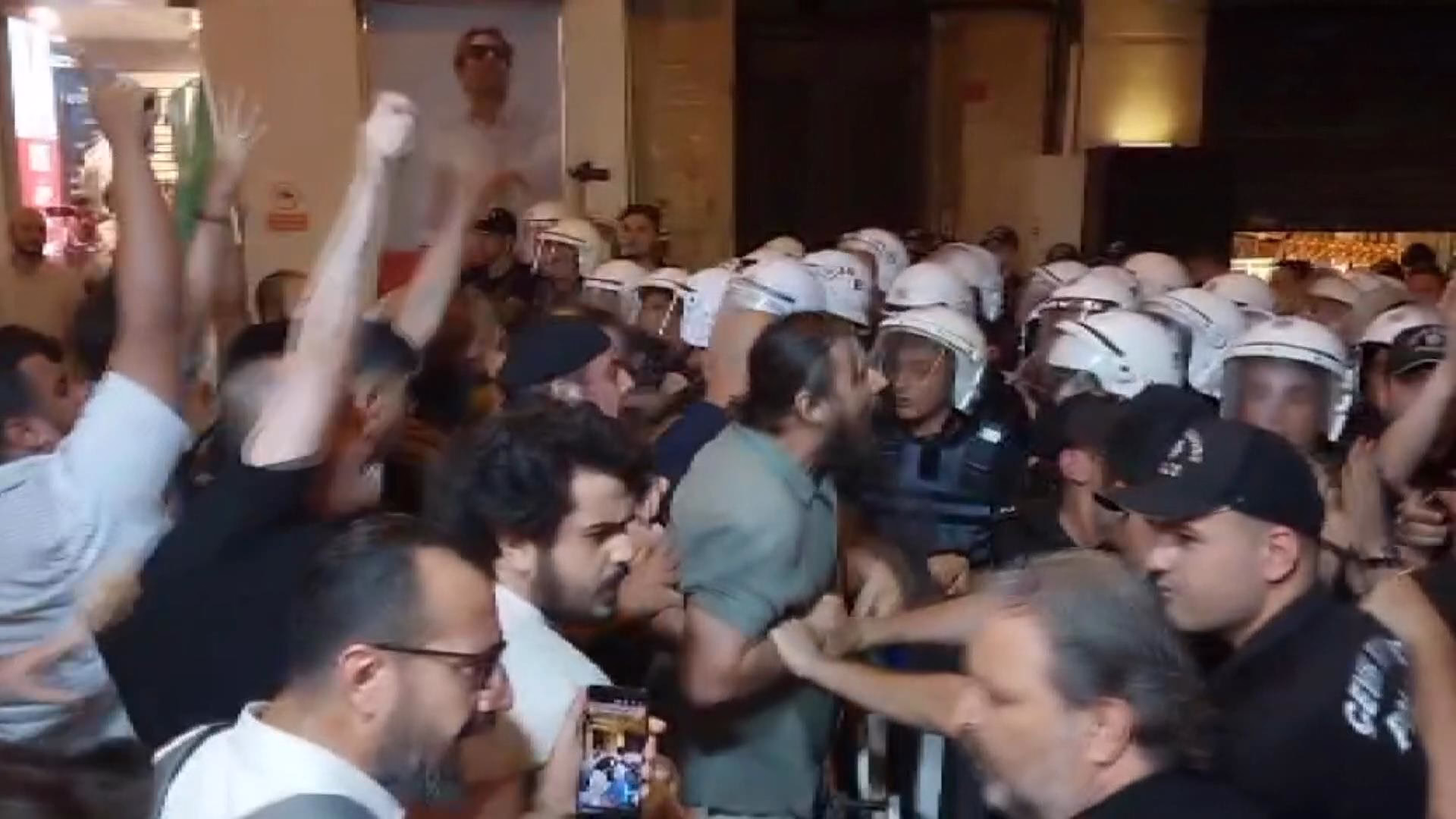 [fvplayer id=”185″]Tepki çeken karikatür sonrası soruşturma başlatıldı, Beyoğlu’nda protestocular ile polis arasında zaman zaman arbede yaşandı.