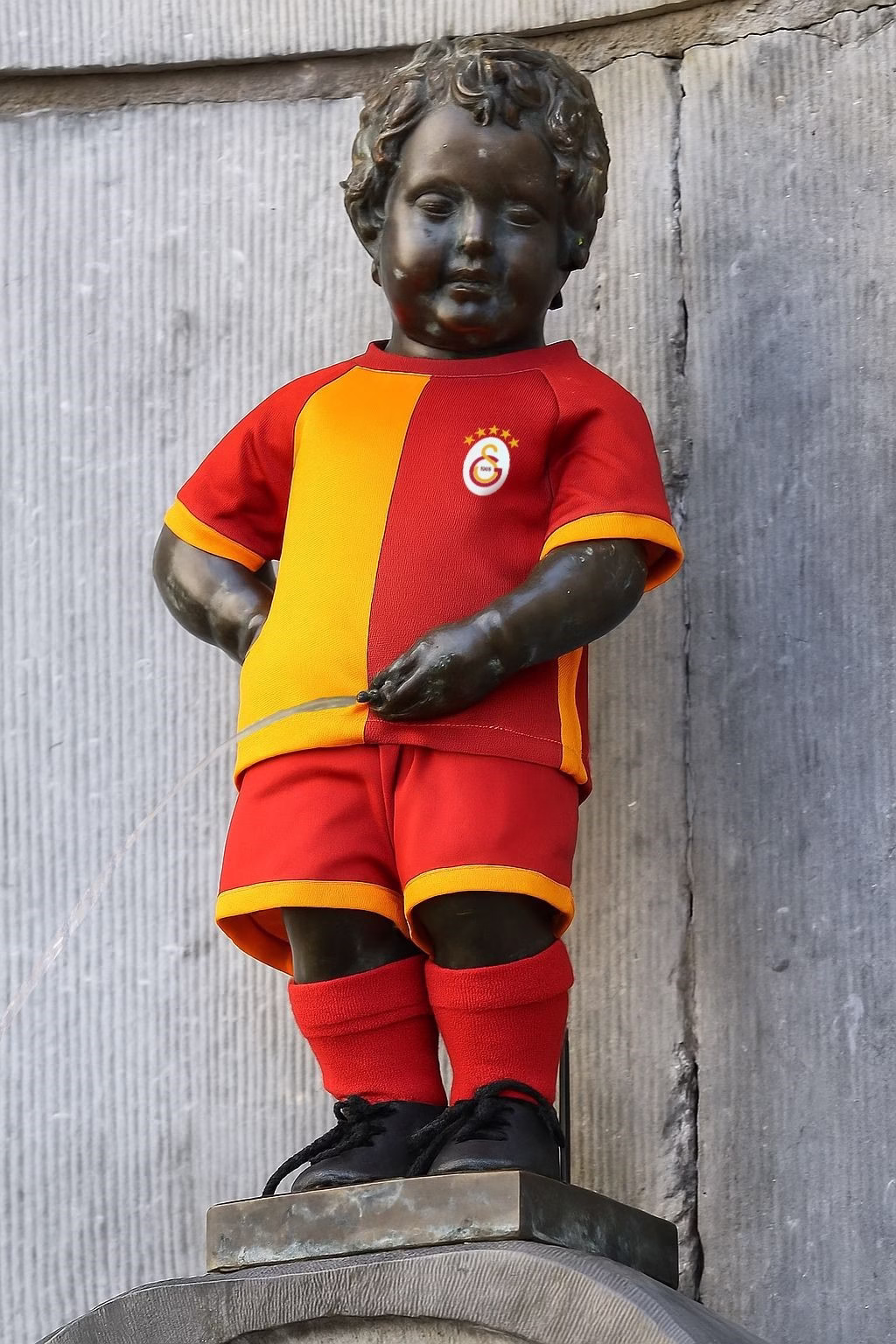 Manneken Pis heykeline giydirilen 1177’nci kostüm, Galatasaray’ın sarı-kırmızılı 5 yıldızlı forması oldu. Heykelin daha önce yalnızca Brüksel’in yerel takımı Anderlecht’in formasını giydiği biliniyordu. Galatasaray, heykelin tarihinde forması giydirilen ilk Türk kulübü olarak kayıtlara geçti.