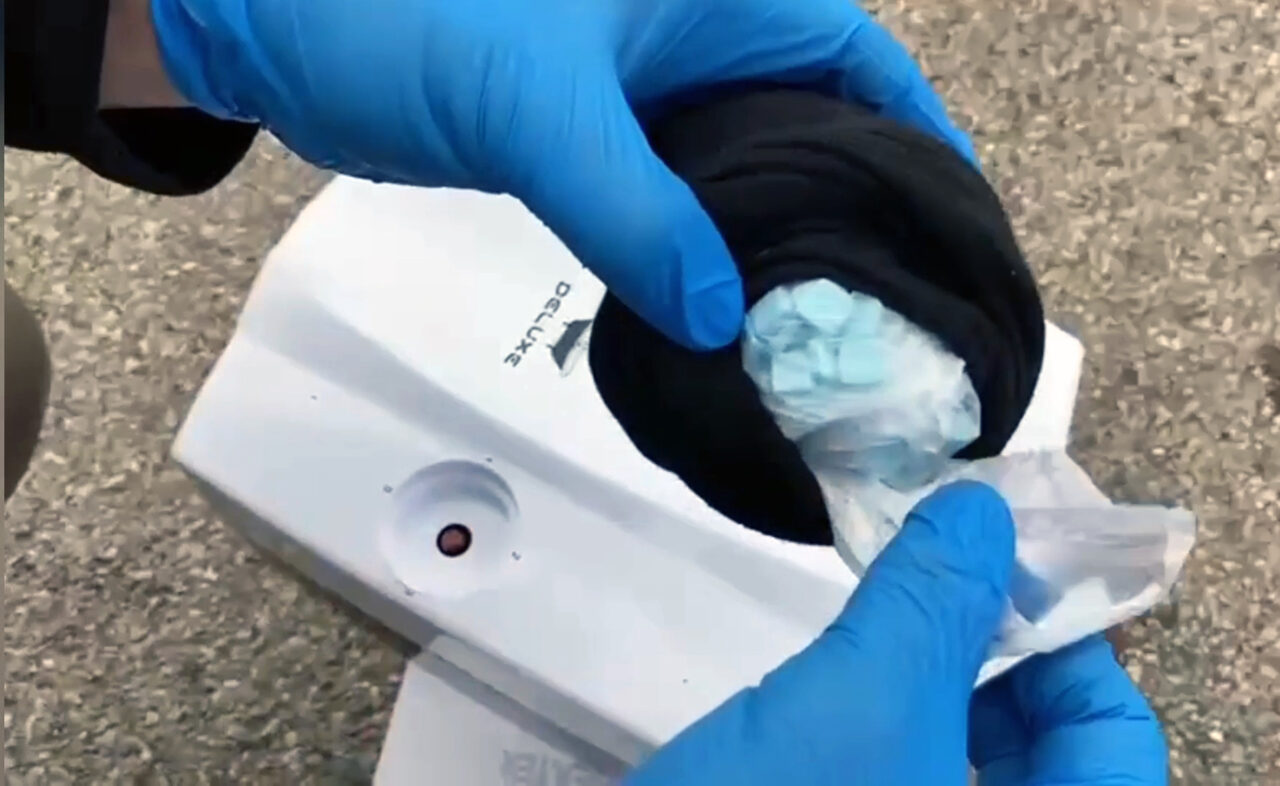 Adana’da takibe alınıp, durdurulan araçta narkotik dedektör köpek ‘Uzi’ ile yapılan aramada, kutuda bulunan şofbenin içerisinde çoraba sarılı 806 uyuşturucu hap ele geçirildi.