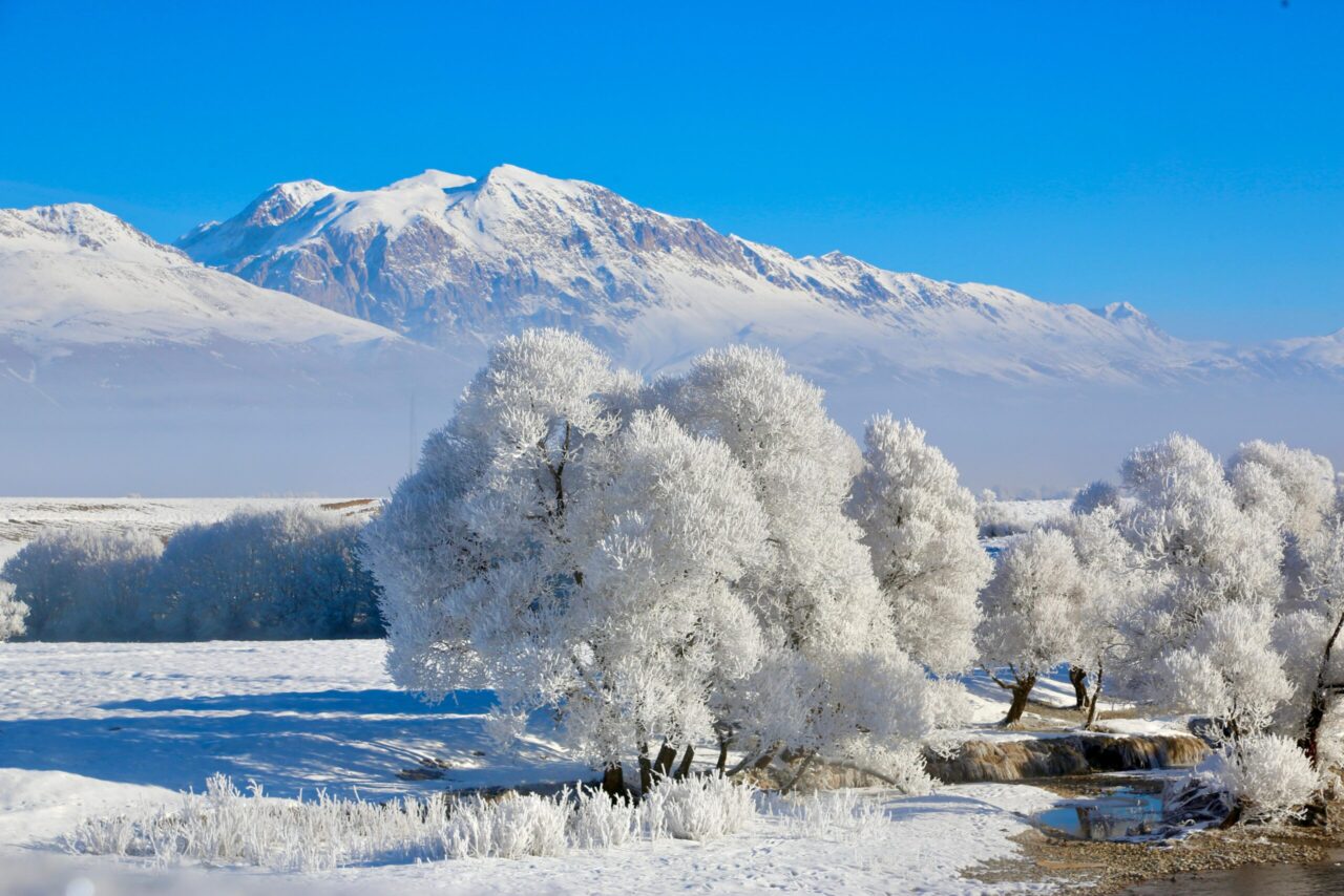 Munzur ve Mercan dağları arasında kurulu, 1500 rakımlı Ovacık ilçesi, eşsiz doğası, doğal güzellikleri ve yer altı sularıyla her mevsim yerli ve yabancı turistlerin ilgisini çekiyor. Türkiye’de kışın en çetin geçtiği bölgelerin başında gelen Ovacık ilçesinde, bir süre önce yağan karın ardından dondurucu soğuklar etkisini göstermeye başladı. Hava sıcaklığının gece sıfırın altına düştüğü ilçede, ağaçlar ve ovalar kırağıyla beyaza büründü. Karla kaplı dağların, kırağıyla beyaza bürünmüş ağaçların, gökyüzüyle ve ilçeden doğan Munzur Nehri ile oluşturduğu manzara havadan görüntülendi. Bölgedeki güzel görüntüler de ilgi çekti.