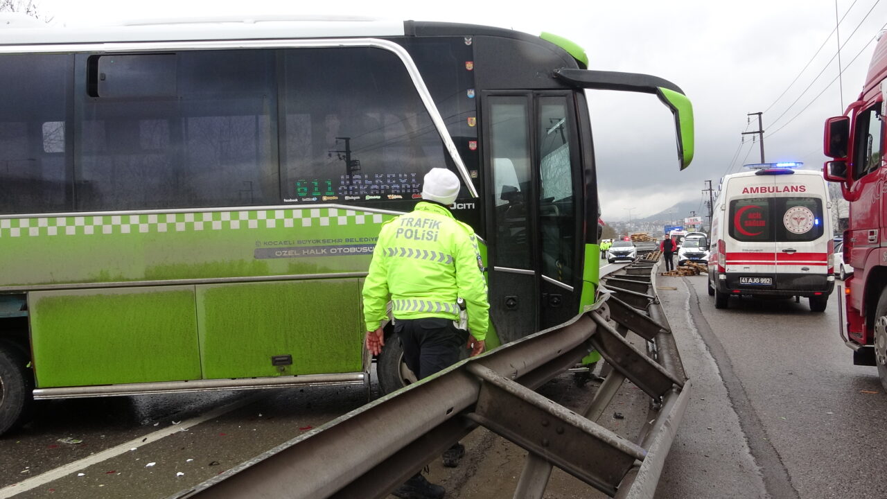 Kaza, saat 15.00 sıralarında İzmit ilçesi Sanayi Mahallesi D-130 kara yolu Gölcük istikametinde meydana geldi. İ.S. idaresindeki 41 APC 995 plakalı özel halk otobüsü ile yan yoldan kara yoluna bağlanan S.A. yönetimindeki 41 ASV 716 plakalı palet yüklü kamyonet çarpıştı. Otobüs savrularak bariyerlere çarptı. Kazada 2 şoför ile otobüste yolcu olan A.A. yaralandı. Çevredekilerin ihbarıyla bölgeye itfaiye, sağlık ve polis ekibi sevk edildi. Yaralılar ambulanslarla hastaneye götürülürken, kaza ile ilgili soruşturma başlatıldı.