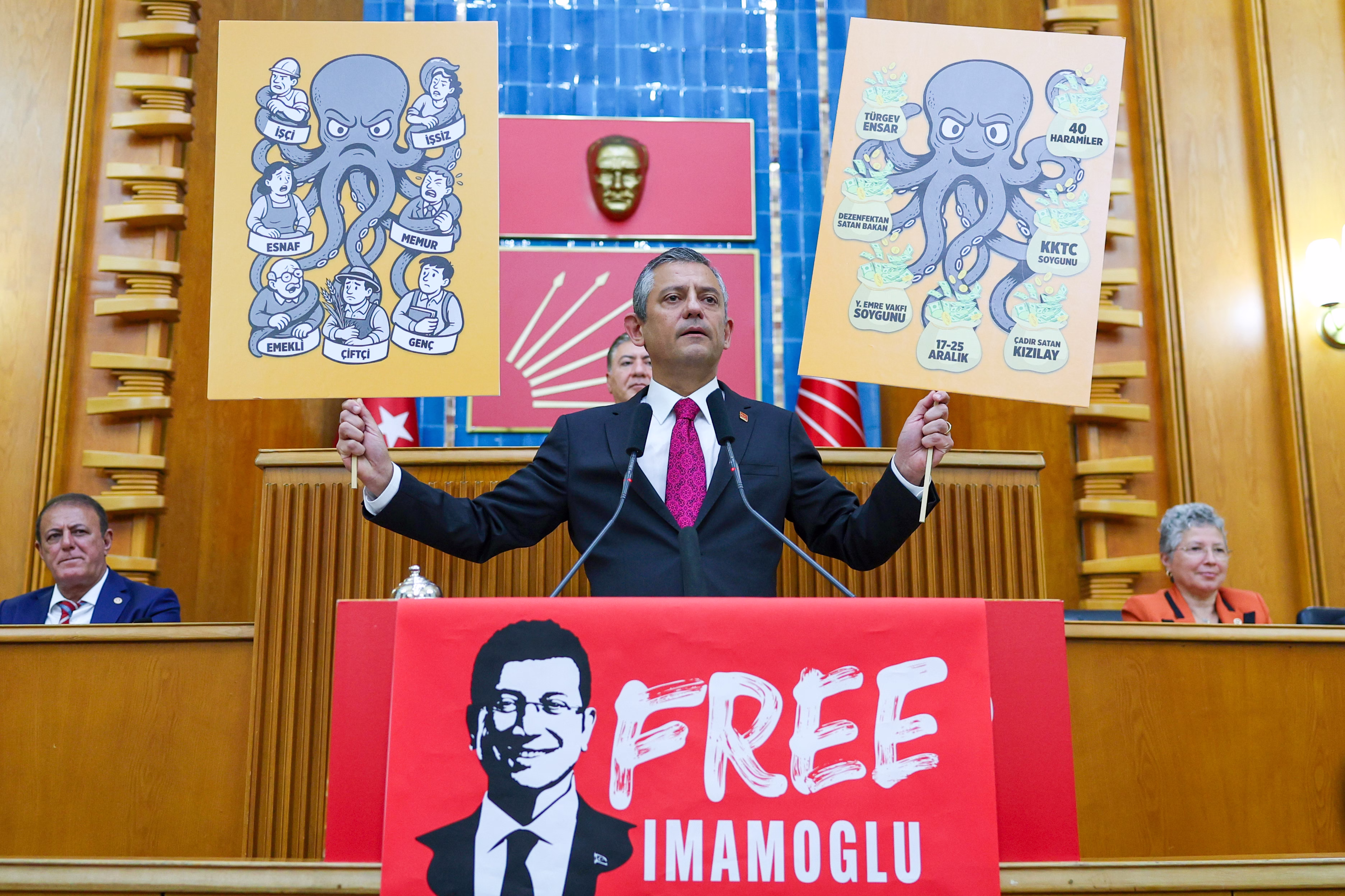 ANKARA – CHP Genel Başkanı Özgür Özel, partisinin Türkiye Büyük Millet Meclisi (TBMM) Grup Toplantısı’nda yaptığı konuşmada, ekonomik kriz, adalet sistemi, yolsuzluk iddiaları ve İstanbul Büyükşehir Belediyesi’ne (İBB) yönelik operasyonlar üzerinden hükümete sert eleştirilerde bulundu. Özel, asgari ücrete ara zam ve emekliye seyyanen zam yapılması taleplerini yinelerken, “Huzur vermeyeceğiz. O ara zammı söke söke alacağız” dedi.