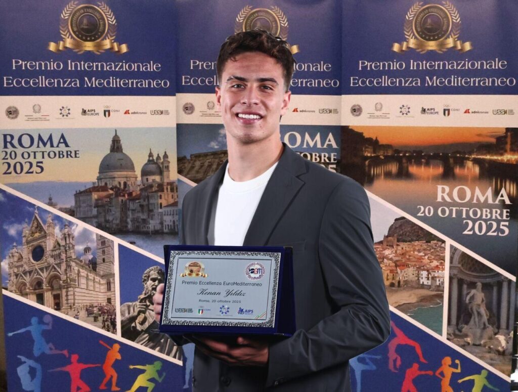 İtalya’nın başkenti Roma’da düzenlenen 2025 Uluslararası Akdeniz Mükemmeliyet Ödülleri’nde milli futbolcu Kenan Yıldız ve Servet Yardımcı, sporda üstün başarılarıyla ödüle layık görüldü.