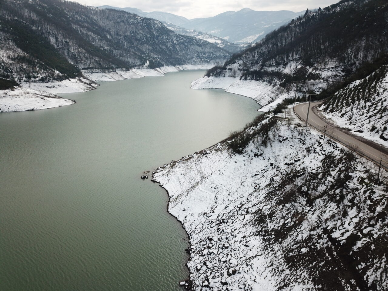 Son aylarda etkili olan yağışların ardından 51 milyon metreküp kapasiteli barajda su seviyesi bugün itibarıyla 23 milyon 16 metreküp ile yüzde 45 olarak ölçüldü. Öte yandan beyaza bürünen barajda oluşan seyirlik manzara da havadan görüntülendi.