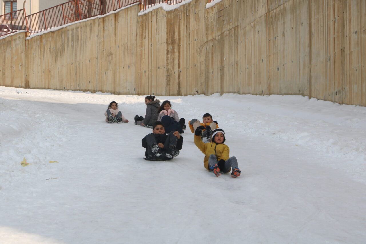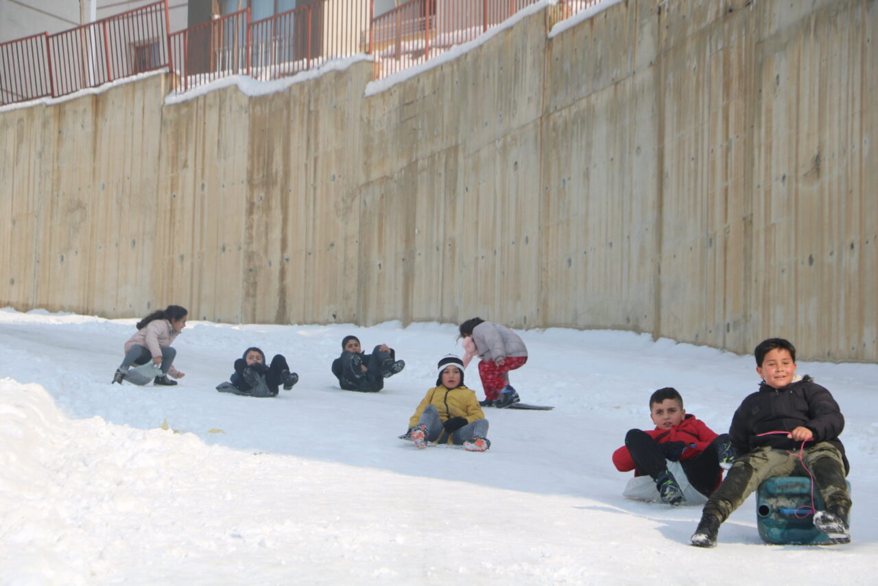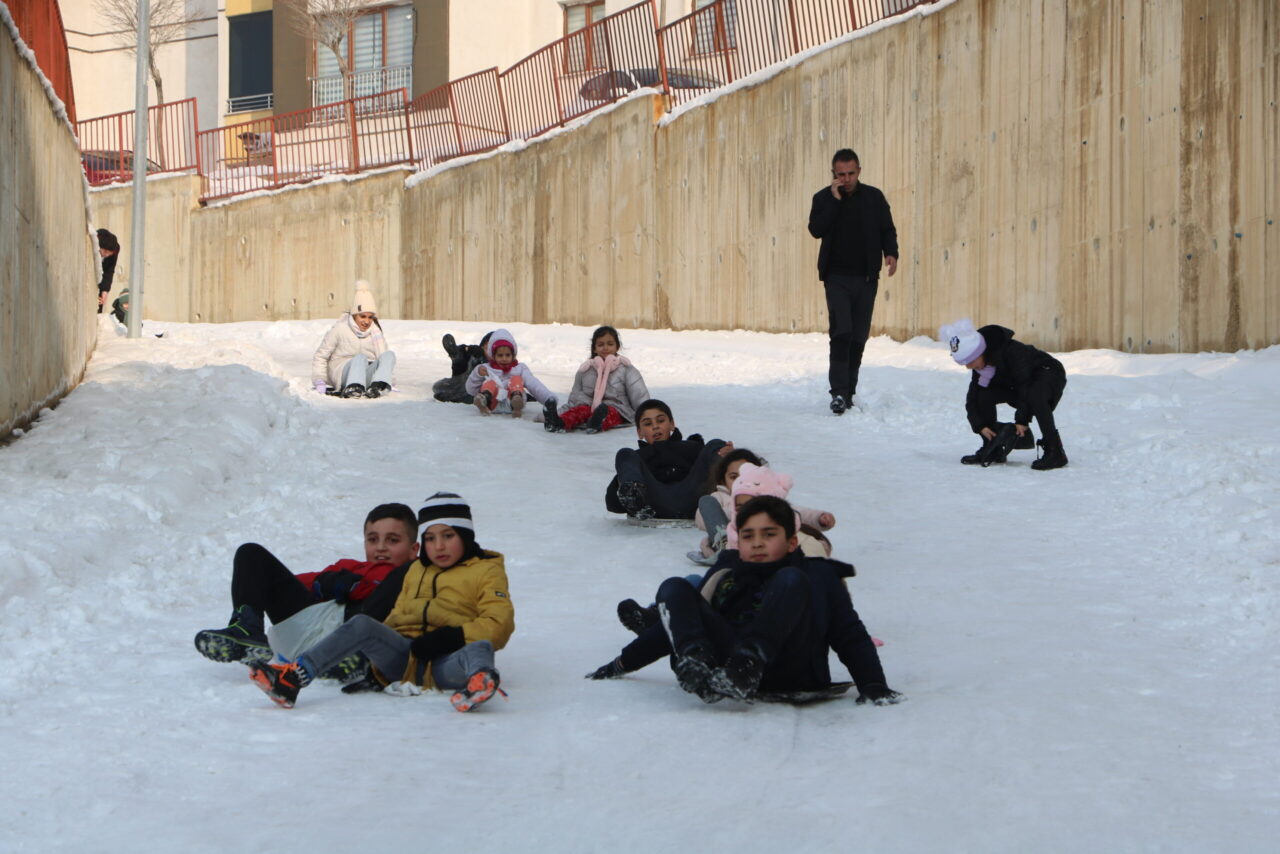 Yüksekova ilçesinde etkili olan kar yağışı sonrası buzla kaplanan yollar sürücüler için çileye dönüşürken, çocuklar için de eğlence kaynağı oldu. Hafta sonunu fırsat bilen çocuklar Esenyurt Mahallesi’ndeki yolu, buz pistine çevirdi. Çocuklar tepsi, poşet ve kızaklarla kayarak gönüllerince eğlendi. Kar topu da oynayan çocuklar keyifli zaman geçirdi.
